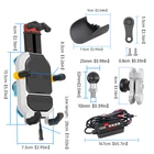 Product Description If you have any questions, please contact customer service first, do not open disputes easily, thank you! Features : 1.This product supports wireless charging 15w for faster charging of cell phone 2.Cell phone holder retractable range is 9.5-11cm 3.5-6.5 Inch cell phone can be used Wide range of use, most of the cell phone can be applied 3.The product comes with a 1.5m thicker connecting cable,which is stronger and more solid The bracket and the battery connecting line comes with a fuse Prevent excessive voltage,can effectively protect the cell phone and bracket 4.The product adopts rotating ball design,can be rotated 360° in the horizontal direction The product is designed with a rotating ball,which can be rotated 360° horizontally 5.The bracket is made of thickened silicone,soft rubber gasket to protect the phone against bumps Enhanced cushioning to protect the phone can be used with confidence 6.The product adopts mechanical locking design Even if you are riding on the road,you are not afraid of speed bumps,emergency braking and bumps 7.Built-in intelligent identification chip,fast automatic induction wireless charging Automatically identify the charging power of Apple/Android cell phone High resolution,strong applicability Specification : Product Material:Aluminum alloy+PC Phones-Compatible Width:9.5-11CM Height:13.5-17.5CM Product line length:135cm Input voltage:12V Output power:wireless charging 15W Instructions for use The red wire is positive,the black wire is negative And the blue wire is the ACC wire Please do not connect the wrong one Otherwise it will easily cause product damage Mirror-Bracket Net weight:482g Diameter of Mirror Holder:1CM Handlebar-Bracket Net weight:549g Applicable Tube Diameter:1.8-3.5CM M8 Screw bracket Net weight:492g Ball head diameter: 8mm at the bottom. M10 Screw Holder Net weight:500g Ball head diameter:bottom diameter 10mm Package Includes : 1 Set*Mobile phone holder(optional) Note : Only include the above package products Specifications have been manually tested and are for reference only Please refer to the physical object,thank you About Us We accept all payments authorized by eBay. powered by