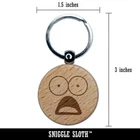 Mouth Agape Shocked Face Engraved Wood Round Keychain Tag Charm