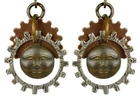 Ms Moon Steampunk Femme Fatale earrings, made by Steph King of No Monet in California, USA! Vintage designed brass gears and decorative brass stampings are layered into multi-dimensional Steampunk earrings that fuse a modern twist with urban levity with the darker and more obscure side if Victorian style. The entire Steampunk Femme Fatale jewelry line is designed and made in the USA by Steph King. #SF-E5