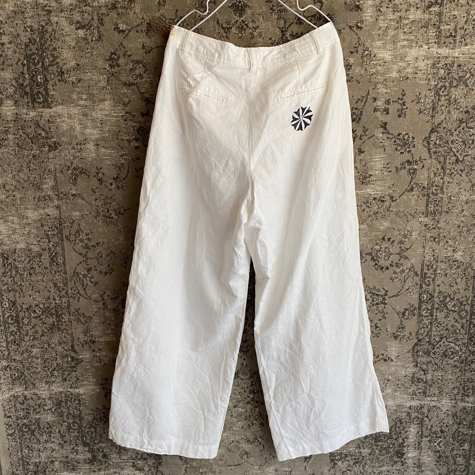 Free eBay listing template designed by dewiso.com Return We will issue 20-50% refund depending on a returned item condition.Return item has to be in the same condition as we shipped.Lacking of accessories is not acceptable.Also no refund issued if a returned item is not what we sent or what you described. Shipping Shipping within 10 business days by FedEx, Japan Post Transport after receiving payment. Contact We can be contacted at any time through eBay messages if you have any questions, comments, or product requests. We will usually respond to you within 24 hours during business days and do our best to help you out! PRODUCT DETAILS mui Hand Printed Block Printed Linen Cotton Wide-Leg Pants Unisex White Okinawa Condition: Pre-owned. There are slight signs of use, but no noticeable damage. May display signs of previous use consistent with vintage clothing. Refer to photos for exact condition. Details: This is a block print work by the artist mui from Okinawa(JAPAN) Block-printed on Used Gap pants. Each piece is hand-printed with motifs inspired by Okinawan plants and animals, old pottery, and Hajichi tattoos that women in old Okinawa used to wear as a sign of adulthood. Color: White Material: 55% Linen 45% Cotton Size: Model 170 cm (5'7") and 69 kg (152 lbs) The measurements are taken with the garment laid flat. Actual size: Waist (no elastic): 39 cm (15.4 inches) Length: 98.5 cm (38.8 inches) Hip: 50 cm (19.7 inches) Rise: 28 cm (11.0 inches) Thigh: 35 cm (13.8 inches) Inseam: 74 cm (29.1 inches) Hem width: 33 cm (13.0 inches) Please feel free to contact us if you have any questions. OKW000881 About Us At IRODORI Works japan, we are committed to offering high-quality products at the best prices possible. We take customer service very seriously. If you have questions about any item we sell, please send us a message. We stand behind every single product we sell and want to hear from you if are not fully satisfied with anything you receive from us. Payment All payments are handled by eBay through their platform. Shipping Standard shipping: Ships by DHL (with tracking number) Depending on the region, it may be shipped by JAPAN POST . It will arrive in 5-10 days after shipping. Economy shipping: Shipped by e-packet (with tracking number) Depending on the region, it may be shipped in small packets. It will arrive 14 to 21 days after shipment. Handling time: Ships within 10 business days of purchase. Business Days We are open Mondays to Fridays . Our office is closed on Saturdays, Sundays, and Japan Public Holidays . Disclaimer Import duties, taxes, and charges are not included in the item price or shipping cost. These charges are the buyer's responsibility. Please check with your country's customs office to determine what these additional costs will be prior to bidding or buying. Free eBay listing template designed by © dewiso.com .