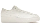 The product is a pair of Women's Nike Blazers in a white colorway, featuring a platform sole and a woven fabric type. The Summit Blazers model offers a unique and stylish sneaker option for women seeking a blend of athletic functionality and fashionable design. With a US shoe size of 8, these sneakers are perfect for those looking for a comfortable and trendy addition to their footwear collection.