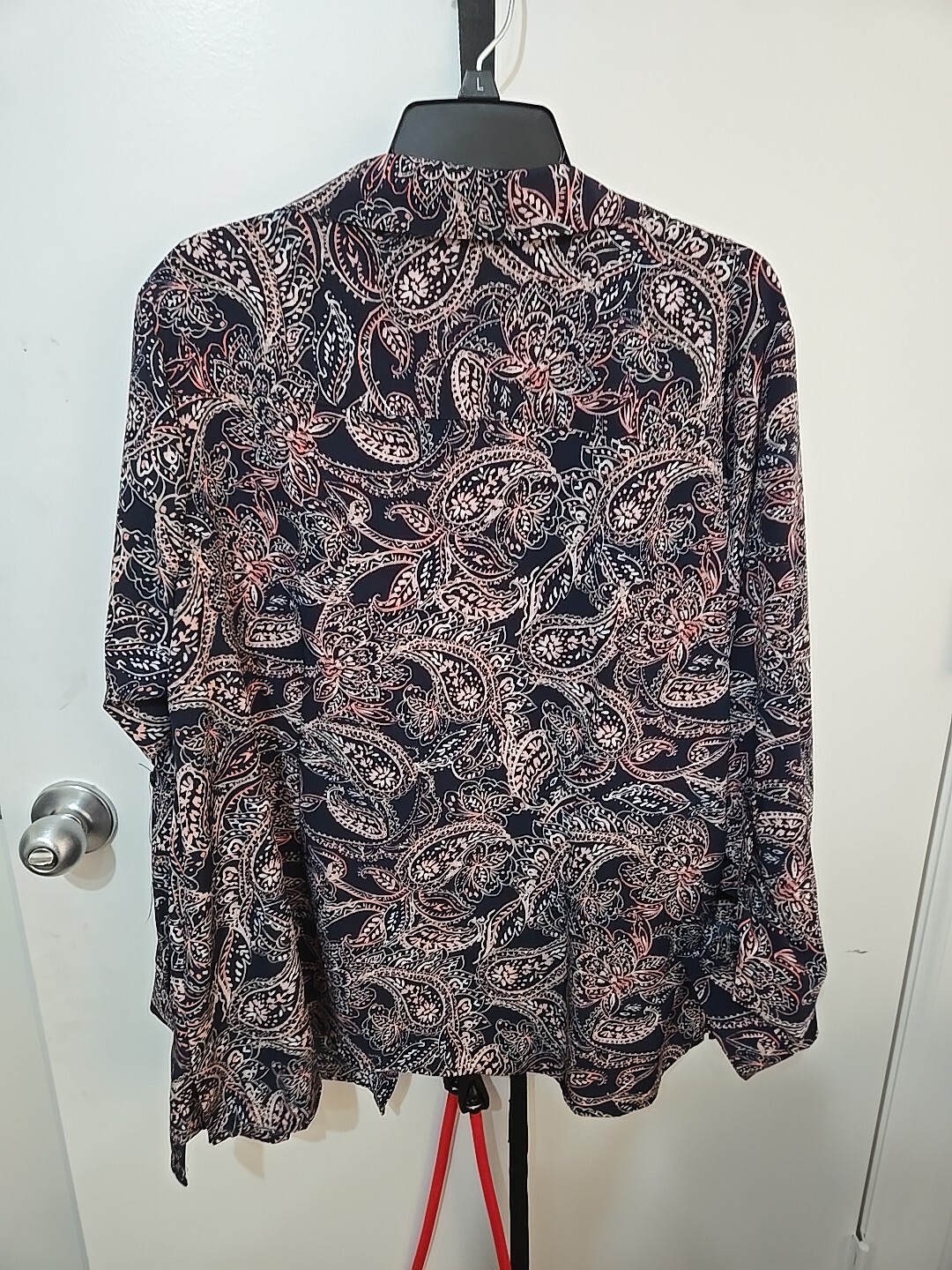 New Style Works Plus 2X Multicolor Long Sleeve Paisley Button Down Blouse