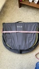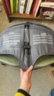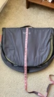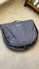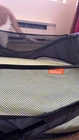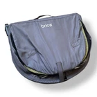 Munchkin Brica Fold 'n' Go Baby Travel Pod Portable Crib Bassinet in Gray. This is a sleek folding travel bassinet for infants and babies. Gray exterior. Removable mattress pad with light green mattress cover. The cover has two spots of wee pin holes, but could easily be mended or replaced, and they are at the outer edge and back so you can't really see them. Folds up and open so easily -- press and hold the green buttons on the sides. Smoke free, pet free, scent free home.