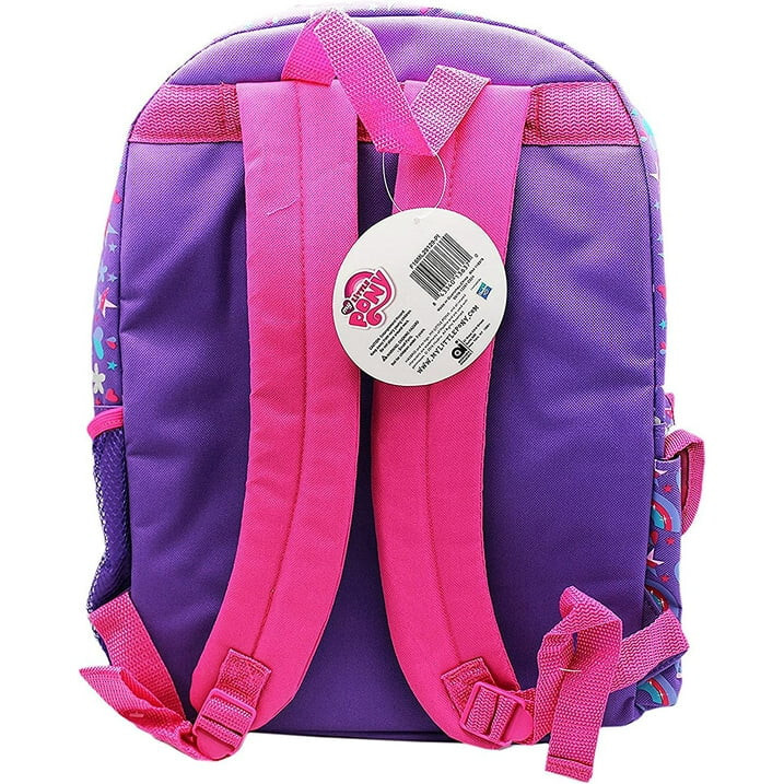 Two front zippered pockets. Size: 16" x 12" x 5" One spacious main compartment. One side mesh pocket. One side velcro flap pocket. Padded shoulder straps and back panel. Adjustable shoulder straps. Officially licensed product.