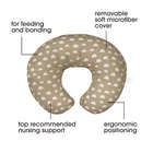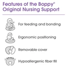 Boppy Original Support Nursing Pillow, Tan Pebbles, Ergonomic Breastfeeding, Bottle Feeding, and Bonding, Firm Hypoallergenic Fiber Fill, Removable Cover, Machine Washable About this item CREATED FOR COMFORT: Designed by a mom, this nursing pillow provides relief to your arms and back by lifting your baby to a more ergonomic position when breastfeeding, bottle feeding, and bonding YOU HAVE OPTIONS: C-shaped design allows for multiple feeding styles—cradle, cross cradle, football hold, bottle feeding EASY CARE, MACHINE WASHABLE: Machine washable and dryable because messes happen MORE COVERS AVAILABLE: Comes covered in a removable cover, and additional covers are sold separately so you can have backup on laundry day EASY CARE, MACHINE WASHABLE: Machine washable and dryable because messes happen AWAKE-TIME ONLY: This product is for baby’s adult-supervised awake-time for feeding and bonding, not for sleep Product Description Formerly known as the Boppy Nursing Pillow. Ergonomic support while nursing, bottle feeding, and bonding. By allowing you to be more upright with baby, your arms and back will get a rest. The beltless design allows for an easy, one-handed placement with no fuss, and the Miracle Middle panel provides a seam-free connection with your body for a more comfortable fit for c-sections or stomach tenderness after birth. The award-winning Boppy Original Nursing Support is a registry must-have and a parent favorite. The added comfort is also great for sibling and grandparent bonding, too. Versatile positioning supports the feeding style that works for you and baby. Whether cradle, cross cradle, football hold, or bottle feeding, you will be comfortable. Small enough to easily fit in your rocking chair or glider, but big enough to give the support you need. Support for you and baby with hypoallergenic fiber fill and a removable cover to help keep your nursing support cleaner longer. A variety of Boppy Brand Covers to fit your style are sold separately, from cotton blends to organics, so you always have backup on laundry day. Designed for your baby's adult-supervised awake-time. This product is not for sleep. Thank you to the millions of parents who trust Boppy. Our mission is to keep you feeling comfortable and confident with your decision to choose Boppy for high quality products, expert third party testing and clear messaging. Because many traditional pillows are for sleep, we wanted to move away from this word to be even more clear that you should never let a baby sleep on or near any nursing pillow. Newborns should always be put to sleep on a firm, flat surface free from loose blankets, pillows, stuffed toys, bumpers, and other soft items. We are changing the name of our #1 most recommended product for the past 30 years from a “nursing pillow” to a “nursing support” to further communicate that your baby should never sleep on this product. Just an added reminder to keep baby safe and use products as intended. Technical Details Brand Boppy Special Feature Removable Color Tan Pebbles Shape Semicircular Age Range (Description) Baby Recommended Uses For Product Nursing Use for Back Item Firmness Description Soft, Firm Item Dimensions LxWxH 22.5 x 18 x 6 inches Product Care Instructions Pillow: Front load washing machine is recommended. Machine wash using mild liquid detergent, delicate cycle, 30°C (65°F - 85°F). Only non-chlorine bleach when needed. Tumble dry low on delicate cycle. While drying pillow, throw a sneaker or tennis ball (wrapped in a pillow case) in the dryer to help the pillow keep its shape. Do not iron. Do not dry clean., No special equipment required. Wash slipcover separately. Machine wash using mild detergent, delicate cycle, 30°C (65°F - 85°F). Only non-chlorine bleach when needed. Tumble dry low on delicate cycle. Cool iron as needed. Do not dry clean. Number of Pieces 1 Pattern Solid Item Weight 1.95 Pounds Material Feature Hypoallergenic Product Dimensions 22.5 x 18 x 6 inches Item model number 00056066240490 Material Type Polyester material_composition Cover Material: 100% Polyester; Pillow Cover: 80% Polyester/20% Cotton; Pillow filling: 100% Polyester Fiber Additional product features Removable