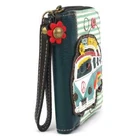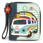 NEW CHALA TEAL WHITE STRIPE RETRO PEACE BUS VAN ZIPPERED WALLET ORGANIZER