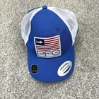 NEW Columbia PFG Trucker Hat Cap Mesh Fish USA Flag Adult Unisex 0/S Blue White. Condition is New with Tags. Shipped Standard. See All Photos With Blemish.