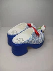 Celebrate the 50th anniversary of Hello Kitty with these stunning Crocs clogs! The blue glitter Siren design features the iconic character and is perfect for any casual occasion. The synthetic upper material and lining ensure maximum comfort, while the block heel style adds a touch of elegance. These slip-on clogs are perfect for any fan of Hello Kitty and come in women's size 7 and men's size 5. The glitter accents and Hello Kitty widgets make these shoes stand out from the rest. Don't miss out on the chance to add these stylish and comfortable Crocs to your collection!