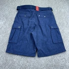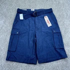 NWT Levis Linen Blend Snap Cargo Shorts Mens Size 34 Blue Belted Falls Below Knee. Condition is New with Tags. Shipped Standard. See Photos With Measurements.