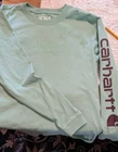 Style:BasicSleeve Length:Long SleevePattern:SolidType:T-Shirtgtin13:Does not applyFit:LooseSize:SFeatures:HeavyweightSize Type:RegularColor:GreenAccents:LogoUPC:Does not applyMaterial:100% CottonDepartment:WomenBrand:CarharttNeckline:Crew Neck