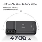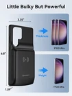================================ 【Qi Wireless Charging & Bluetooth headphones Supported】Newdery galaxy S21 S22 S23 S24 battery case allows you to charge the case and your phone simultaneously via Qi wireless charging pad (not included).ONLY support Bluetooth wireless headphones. 【EXTENDED 100% BATTERY LIFE】Samsung S21 S22 S23 S24 slim backup case battery with built-in 4700 or 4800 mAh rechargeable Li-polymer battery pack, doubles your battery life. The galaxy S21 S22 S23 S24 extended case is great for go shopping and travel. 【LED Indicator Light】All-in-One charging case makes convenience. If you charge your phone via Phone battery case at the first time, please hold the power button for 3s to start charging. Besides, it's convenience to track how much power left through ONE-clicking power button. 【360° PROTECT YOUR PHONE】Newdery Battery charger case is not only a portable power bank, but also a protective case for cellphone from scratches. Raised bezels help you to protect the screen to some extent. Please still add a protectors to your phone to prevent it from facing drops. Product Specifications: Capacity: 4700mAh or 4800mAh Input: USB-C DC 5V/1.8A (MAX) Wireless DC 5V/1A (MAX) Output: USB-C DC5V/1.5A (MAX) Battery case fully charges the phone: 2h To fully charge the battery case: 3.3h To fully charge the battery case via wireless charging pad: 4h To fully charge the battery case and the phone: 5.3h Dimensions:6.18*3.07*0.71 inch DOES NOT compatible with type-c headphones. DOES NOT support Data Sync/Samsung Pay/Android Auto/CarPlay. DOES NOT support magnetic/High Voltage, Quick Charge adapters. Charging via cable/Wireless station: You can charge the phone external battery case with phone via the original charging cable at the same time. And Newdery phone charging case can be charged via the Qi wireless pad without take off the case. What do you get Samsung Battery Case x 1 User Manual x 1 Card x 1 Easy to Use Slide your phone in slowly, make sure the connector of the Phone charger case with phone properly. Press the button for 3s to begin/stop charging your phone If you need to take it off, bend the top soft rubber of the case, then push your phone up slowly.