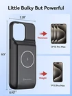 【Compatible Devices】The battery case only fits for iPhone 15 Pro Max, iPhone 15 Plus. Doesn't fit for iPhone 15, iPhone 15 Pro, iPhone 14 Plus, iPhone 14 Pro Max, iPhone 13 Pro Max and other iPhone brand phone. Please check your phone model before buying. The charger case built-in TYPE C port. 【10000mAh High Capacity】The iPhone 15 plus charging case built-in 10000mAh Lithium-ion battery, powerfully extended 200% battery life to your phone, make your phone alive a whole day. It has passed CE, FC and RoHS certification and can be taken on board the plane. Perfect for daily heavy user, business trip or travel 【Magnetic & Qi Wireless & Wired Charging】 The extended battery pack with built-in magnetic module, can be charged with a wireless charger or mag safe charger for a quick and convenient wireless charging experience. Simultaneously charge your iPhone 15 pro max and the charger case via USB C cable. Your phone will be fully charged first then the charging case. 【Easy to Use&Convenient】The iPhone 15 Pro Max charging case makes installation and carry much easier and safer. Equipped with power level indicator LED lights, just press the button for 3 seconds to start or stop charging. 4 LED battery level indicators that let you know how much power you have (0--25%--50%--75%--100%). Product Specifications 1. Input: 5V/1.5A 2. Output: 5V/1.0A 3. Dimensions: 6.5"*3.28"*0.93" 4. Weight: 7.05oz 5. Charging Port: USB C What You Get 1*iPhone 15 Pro Max Battery Case 1*User Manual Important Note: 1. Support Qi wireless charging, magnetic wireless charging, Apple pay. 2. Access to music or calling with Bluetooth earphone while charging your iPhone 15 Pro Max/iPhone 15 Plus.