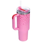 Highlights 11 hours cold 2 days iced 18/8 recycled stainless steel Double-wall vacuum insulation FlowState™ 3-position lid Car cupholder compatible Dishwasher safe BPA-free Description Share your love with the special ones in your life with a Valentine’s Quencher from Stanley 1913, exclusively at Target. Pick from the sweetest rich pink or deep red hues, featuring matching cascading hearts. Made for gifting, a card label is included that’s perfect for your Valentine’s Day baskets, best friends and even as a little something for yourself. The 40-ounce Quencher H2.0 FlowState™ Tumbler keeps your drink ice cold for hours, thanks to double-wall vacuum insulation. The versatile FlowState™ 3-position lid has three sip settings: one for the reusable straw, one without and the option to rotate the silicone cover shut. It fits right in your car cupholder when you’re headed to your Valentine’s Day celebration.