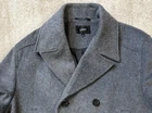 Men's Grey wool blend pea coat from NEXT In great condition Double-breasted button fastening Fully lined Front pockets Material: 70% wool 22% nylon 8% polyester Lining: 100% polyester Label size: Large Please note: This coat runs large and will be better for an XL, pls see below Garment measures: Pit to pit: 25" Pit to hem: 20" Neck to hem: 33" Pit to cuff: 18" Stock ref: NP 3631 / 17124