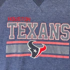 Show your team spirit with this comfortable Houston Texans raglan sweatshirt. Perfect for game days, tailgating, or casual wear. Features the classic Texans logo and team name in bold graphics on a heather navy body with solid navy sleeves. The crew neck and ribbed cuffs and hem provide a comfortable fit. A must-have for any dedicated Texans fan to represent their team in style during the football season or year-round. Type: Sweatshirt Color: Blue Department: Men Style: Pullover Features: Graphic Print, Raglan Sleeves, Ribbed Cuffs, Ribbed Hem, NFL Licensed Fabric Type: Fleece Character: Bull, Texan, Warrior, Champion, Defender Performance/Activity: Football, Tailgating, Sports Spectating, Casual Wear, Fan Support Keywords: houston texans, nfl sweatshirt, football sweater, raglan sleeve, team apparel, sports merchandise, fan gear, athletic wear, gameday outfit, mens sweatshirt
