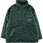 NHL Minnesota Wild Logo Athletic Men's L Puff Jacket Vintage Used Features Specifications NHL Minnesota Wild Logo Athletic Men's L Puff Jacket Vintage Used Brand Name: LOGO ATHLETIC Product Type: Puff Jacket Model: NHL Minnesota Wild Color: Dark Green Material: 100% Nylon Size: Men's L Condition: Used (C Grade) Other Features: Full Zip, Long Sleeve, Back Logo This vintage NHL Minnesota Wild puff jacket is a must-have for any fan. Made by LOGO ATHLETIC, it features a striking back logo and is crafted from durable 100% nylon. The jacket is dark green with a unique pattern, perfect for showcasing your team spirit. It is a Men's size L, with dimensions of approximately 81.5 cm in length, 70 cm in width, 59.5 cm shoulder width, and 63 cm sleeve length. Please note that this item is pre-owned and shows signs of wear, including some stains and repairs. Despite its used condition, it remains a stylish and functional piece for any wardrobe. Embrace the vintage charm and enjoy the comfort of this classic jacket!