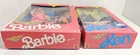 Flight Time Barbie and Ken, issued in 1989. Barbie and Ken in original packaging, though the boxes have been opened. Both the dolls and the boxes are in excellent condition, though the boxes have mars on the back with additional minor wear, consistent with age (see photos). Please note, these dolls are 36 years old and being sold as a collector's item. Old Barbies are not good playthings as joints stiffen with time. I accept returns, but only if the item is undamaged. If you break the seal, remove the doll or any of the other contents from the box, or do a poor job packaging the return so the item is damaged in shipping, or otherwise alter the condition of the doll and box, I can no longer offer a refund since that will destroy the value of the doll. Thanks for your understanding! I offer combined shipping with my other auctions and free shipping on Buy It Now purchases.