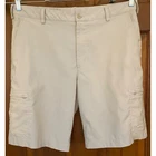 NIKE Golf Mens Shorts Size 35 Beige Dri-FIT Cargo Flat Front Zip Pockets Good pre-owned condition. Note: very faint areas with stain- front by right pocket and mid-backside of shorts. Professional cleaning recommended. Additional signs of normal wear may be present. Please see all photos. Size: 35 - 95% polyester; 5% spandex - lightweight, flat front cargo style shorts - Made in Malaysia - machine washable; style # 401501 (Measurements in photos) Ships FAST & AFFORDABLE - next business day. - All Offers welcome -