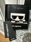 This is a Karl Lagerfeld small wallet in 100% real black leather. The wallet features a zipper closure and a designer logo accent. It is designed for everyone and includes credit card slots for organizing essentials. The wallet measures 4 inches in both length and width, making it compact and convenient for carrying in a purse or bag. It comes brand new in the original box with a retail value of $118, making it a highly sought-after item for fans of designer accessories. great price! brand new in a gift box! see our store for more