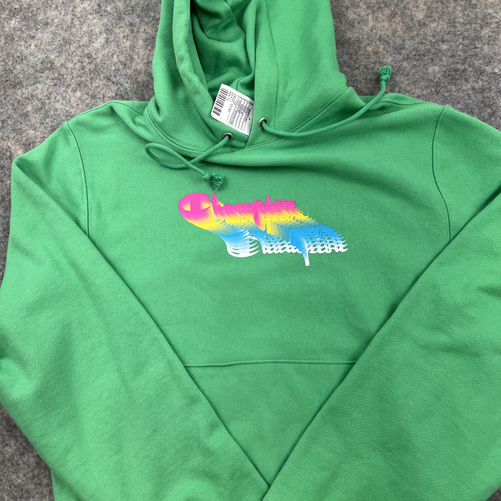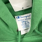 This is a men's Champion Reverse Weave Hoodie in size Small, featuring a drawstring closure, long sleeves, and a green color. Made of cotton blend fleece, it has a logo accent, front pockets, and a regular fit. This heavyweight hoodie is suitable for all seasons and activities like gym training, walking, and running.