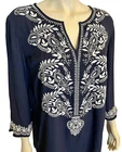 New with Tags! Charter Club Navy Blue with White Embroidery V Neck 3/4 Sleeve Pullover Top Size: Women's XL Navy V neck 3/4 Sleeve Pull over White Floral Embroidery Measures: Underarm to Underarm: 26" Shoulder to Hem: 33" Materials: 95% Polyester, 5% Spandex Machine Wash Cold Tumble Dry Very Good Condition. See all photos. Be sure to check out my other items ! Please note: My goal is always 100% complete customer satisfaction. If for any reason you feel your item arrives "not as described", please contact me before leaving feedback. I am a trading assistant. I can sell items for you! |AMS-KIT|