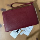 tyle Number CZ763 Measurements Length: 7.25" Height: 4.5" Materials Smooth leather Features Eight credit card slots Double zip closure Wrist strap attached Fits all phone sizes up to an iPhone X and Samsung S7 Edge Packaging may vary