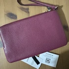 Silver/Tan/Pink Multi Product Details Style Number CAA84 Measurements Length: 8.0" Height: 4.75" Width: 1.0" Materials Signature coated canvas and refined pebble leather Fabric lining Strap Wrist strap attached Features Eight credit card slots Double zip closure Fits all phone sizes up to an iPhone X and Samsung S7 Edge The placement of the bow prints may vary