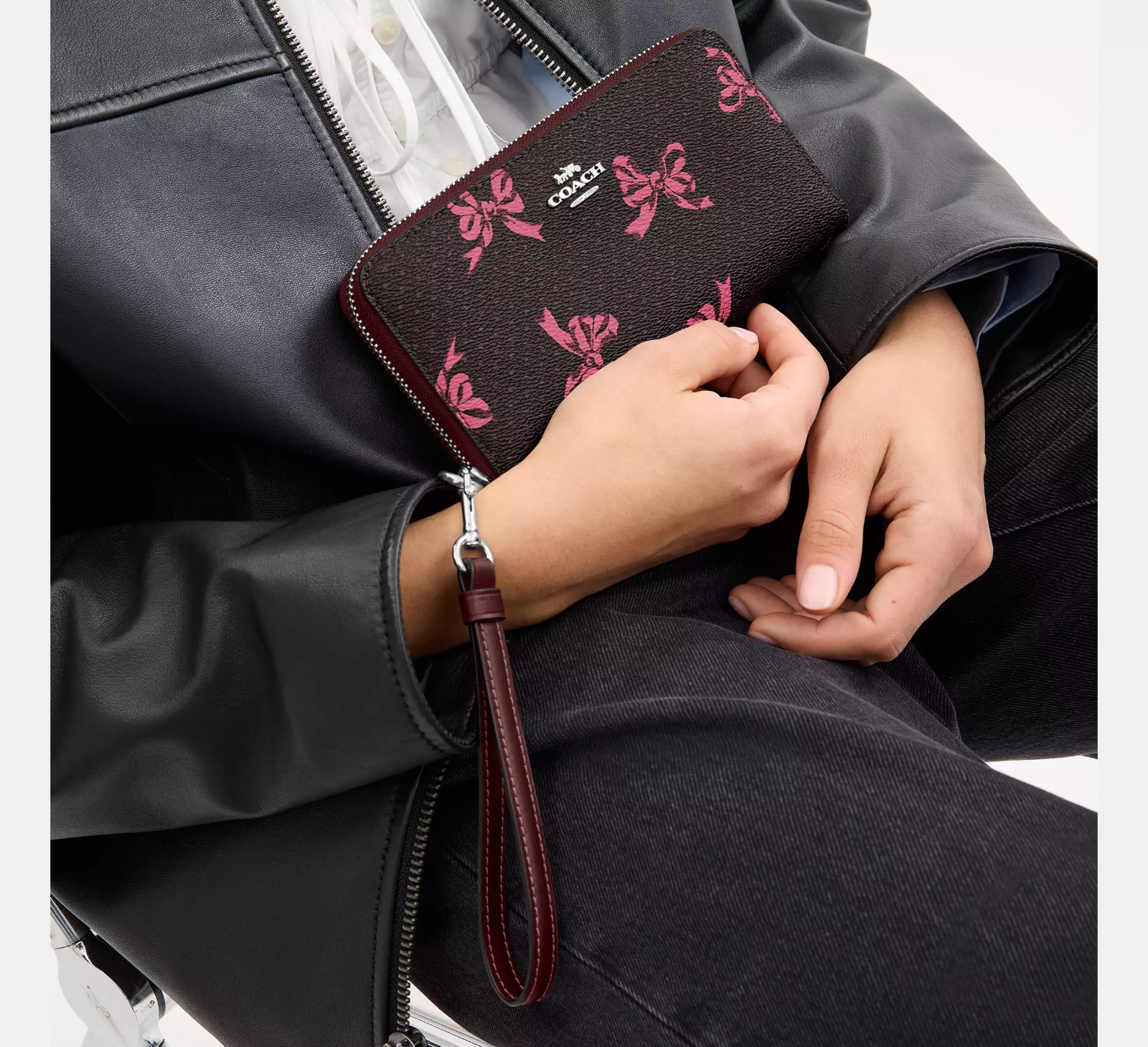 Brand: Coach Color: Silver/Merlot Multi Style: Zip-Around Accents: Bow Fabric Type: Canvas Type: Wallet Department: Women