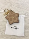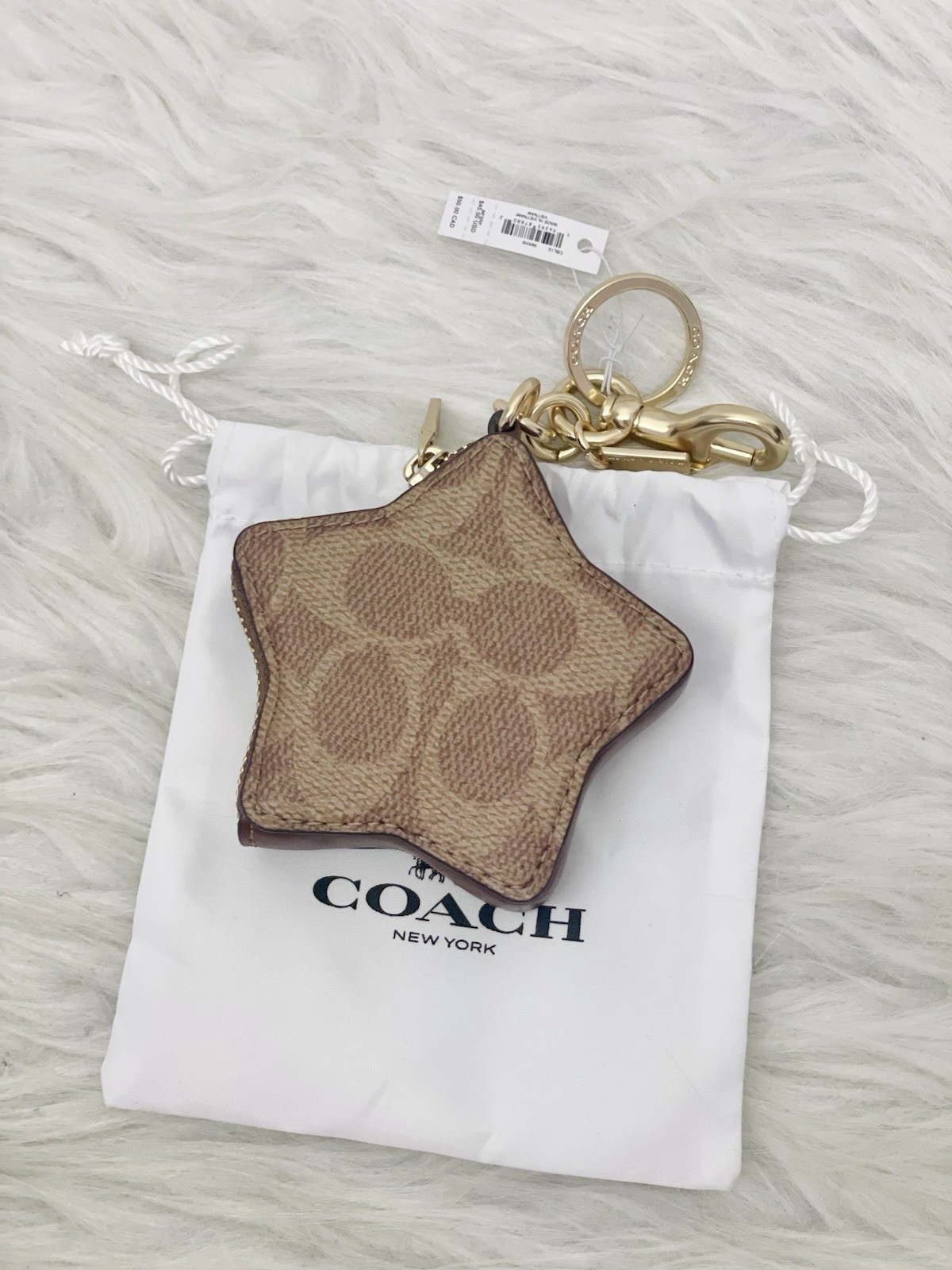 Coach Star Bag Charm In Signature Canvas Brand new with tags 100% Authentic Come with small dust bag Color: Gold/ Tan brown Style Number: CBL12 Measurements Length: 3.5" Height: 3.25" Width: 0.75" Materials Signature coated canvas and smooth leather Fabric lining Features Zip closure Attached dogleash clip Price is firm