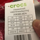 Brand new Crocs Classic Lined Valentine’s Day 2023 Clog Size: Women Size 8 Men Size 6 Style code: 208385-6EN Color: Pepper This model is sold out online! Product details: Glitter treatment Warm, fuzzy red liner Removable sequin heart patch Incredibly light and easy to wear Pivoting heel straps for a more secure fit Great indoors or out Customizable with Jibbitz™ charms Dual Crocs Comfort™: Blissfully supportive. Soft. Cradling comfort. *********************************************** Please take a close look of all the pics and video. You will get the exact same pair of shoes. All sales are final, thank you