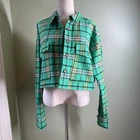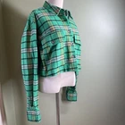 BRAND NEW WITH TAGS Women’s Size 1 / Small Good American women’s cropped tartan jacket / top in green and black plaid. Please see photos for details 100% cotton Machine washable Long sleeves Button front Oversized Two buttoned front chest pockets Fabric is heavy enough to be a jacket Length: 19” Bust: 23.5” Measurements are approximate and taken while laying flat Same/next business day priority shipping Please feel free to ask questions All items come from a smoke-free/pet friendly environment Please make sure to follow me. I list new inventory daily T387/3386PE
