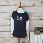 Where are my Flyers fans? This super soft tissue tee make it look like you're wearing a black tshirt over a white long sleeve top. Gritty approved! 100% Cotton. Size Medium. Approximate Measurements Armpit 18" flat Bust 18" flat Length 23"