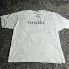 Show your support for the Tokyo 2020 Olympics with this official T-shirt. The white cotton shirt features a graphic print of the Olympic logo and is available in size XXL. The shirt has a crew neckline and short sleeves, making it perfect for any season. It is machine washable and has a regular fit, ensuring comfort and easy wear. The shirt is suitable for both men and women and is ideal for any sports-themed event. Get your hands on this breathable shirt, perfect for the summer, fall, winter, or spring.