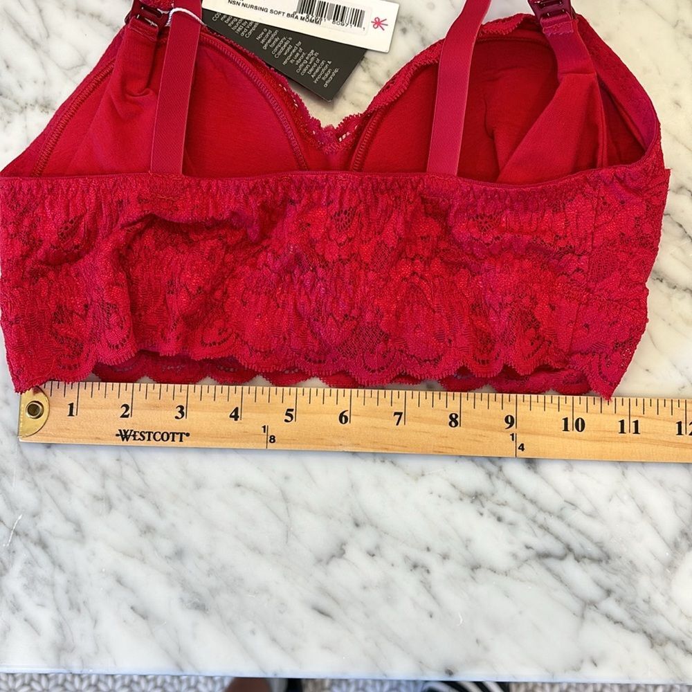 NWT Women's Cosabella Never Say Never Mommie Nursing Bralette in Red, Size M From Cosabella: Our iconic soft Italian floral lace collection known for its innovative stretch and return in an array of shimmering colors. The top selling Never Say Never lace Collection is a must-have for any lingerie wardrobe. We took our Original Never Say Never Sweetie Bralette, the wireless bralette that started it all, and added easy clip nursing clips, nursing slings and removable pads to give you the most beautiful and comfortable nursing bralette around. Wireless bralette designed for nursing. Soft, stretch, semi-sheer, scalloped lace. Slinged, padded cups for a supportive full coverage fit. Easy clip-on/clip-off, adjustable nursing straps for one-handed opening. Pull-on style with sweetheart neckline. Hand wash, do not dry in the dryer. Lace: 93% polyamide, 7% elastane Lining: 95% cotton, 5% elastane Cup: 51% cotton, 44% polyester, 5% elastane