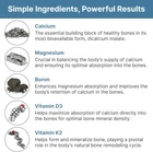 Brand Calciven Unit Count 30.0 Count Item Form Capsule Item Weight 0.05 Kilograms Item dimensions L x W x H 1.85 x 1.85 x 3.5 inches Product Benefits Bone & Joint Support Age Range (Description) Adult Package Information Bottle Number of Items 30 Servings per Container 30 About this item Advanced Bone Support - Keep your bones strong with our unique bone density formula featuring calcium, magnesium, boron, vitamin D3, and vitamin K2 for a calcium complex you can depend on. Calcium and More - Our natural bone-strengthening formula is supported by a complete matrix of essential vitamins and minerals to promote maximum calcium absorption into the bones and help maintain the body's natural bone-building cycle. Bone-Building Nutrients - Fortify your body with our bone support formula specifically designed to deliver a low-dose, high-efficiency supply of vitamins and minerals directly to the bones. Clean Complex - Every bottle of our bone health supplement is made in a GMP-certified facility in New York and is tested to be non-GMO, vegetarian, and gluten-free. Exclusive Calciven Formula - No other brand is able to offer the 5 powerful ingredients of Calciven in their clinically studied amounts.