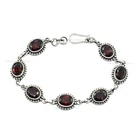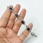 Add a touch of elegance to your outfit with this stunning handmade bracelet. Crafted from 925 sterling silver, this bangle features a beautiful oval-shaped red garnet gemstone with a clarity grade of eye clean. The bracelet is adjustable and has a length of 7.5 inches, making it suitable for various occasions such as weddings, anniversaries, and birthdays. This vintage bracelet has a bezel setting style and a bar link chain type. It is also personalized and comes with a seller warranty. The bracelet is perfect for those who appreciate art deco era jewelry and nature-inspired themes. Don't miss out on the opportunity to own this exquisite piece of fashion jewelry. Natural Red Garnet Bracelet 925 Sterling Silver Handmade Bracelet Jewelry Item: Bracelet Gemstone: Garnet Stone Shape: Oval Stone Size: 6x8mm Stone Category: Faceted Metal: 925 Sterling Silver