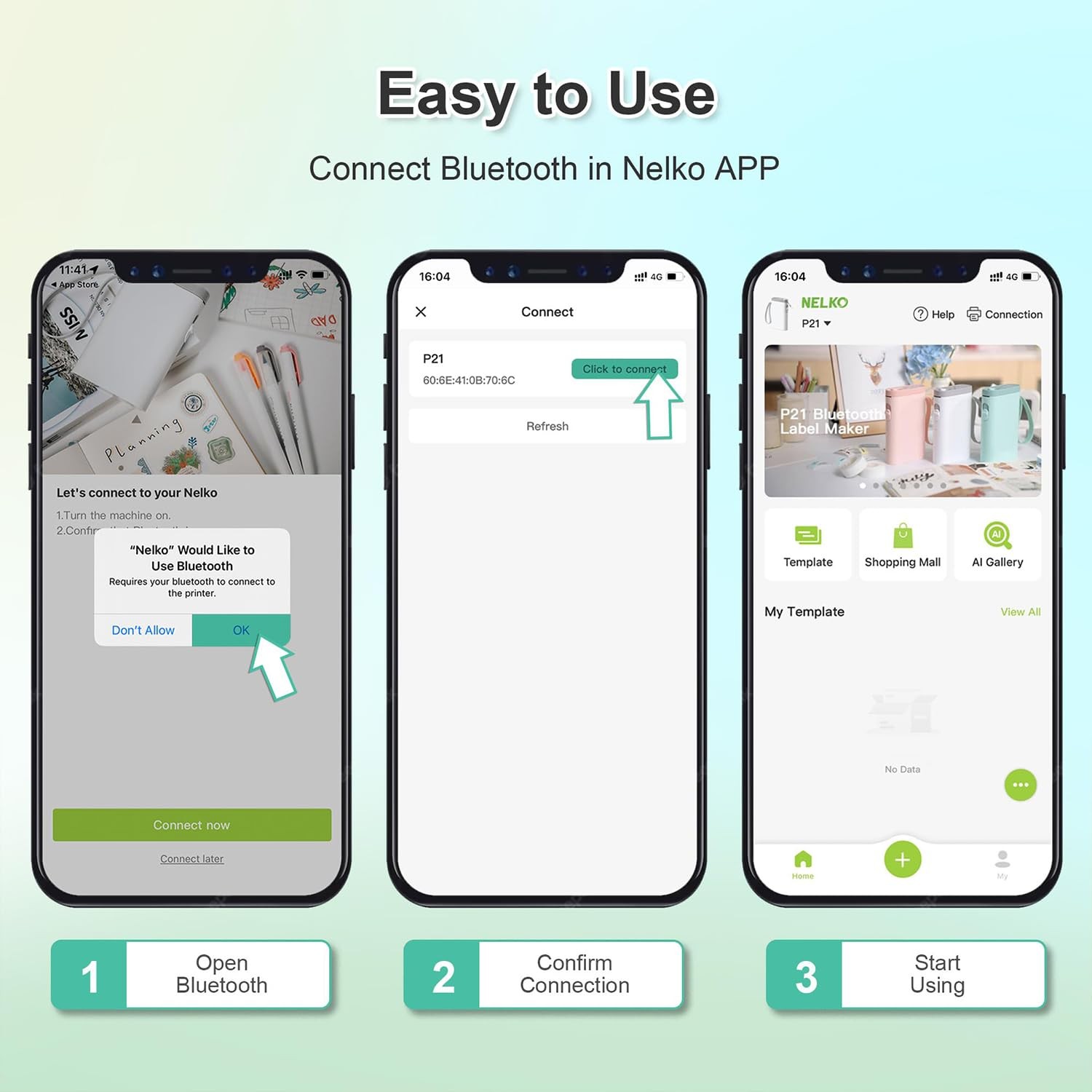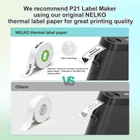 2025 New Version: Compared with the traditional label makers, half weight and size of the traditional label maker, smaller, smarter and convenient for users to carry. Wireless bluetooth label maker can slip into your pocket, allow printing anytime, anywhere. We recommend using our NELKO thermal label paper for good printing quality. Attention: For P21 Nelko APP iOS Users, Please update Nelko APP to the latest version V3.1.0 and iOS App compatibility requires iOS 13.0 or later High-quality Printing: Label Makers with BPA-Free Direct Thermal Technology. Equipped with high-speed chips and 203 DPI, you can enjoy high-definition without relying on ink or toner. Label maker built in durable rechargeable battery, it can work for a long time. This label maker is monochrome printout, which only prints black text. We can create color label and need to use color pattern label tapes for printing.(Note: Not including charging adapter, not suitable for fast charging adapter) Easy to Use: NELKO label printer compatible with IOS & Android via bluetooth connection. Step 1: Download "Nelko" APP from Google Play or App Store. Step 2: Install the paper roll. Step 3: Connect the P21 bluetooth within APP. Step 4: Choose a quick template and start printing. It is not compatible with Google phones on Android 14. This label maker machine with tape APP included more than 90 +Fonts, 10+ Languages, 450+ Materials. (Note: This label maker doesn't work with computers) Multiple Creative Function&Templates: This app of the label maker provides various features and templates, easy to create various design label stickers from App with Text, QR code, Barcode, Materials, Images, Time and Borders, etc. The length of labels is fixed, including 12X40mm, 14X40mm, 14x50mm, 14x75mm, and more. Please do not tear or destruct the green sticker on the back of the label strip , otherwise it will affect the printing effect. (Note: Continuous label tapes are not supported) Design Your Own Labels: The label maker machine with tape is widely used in life and office. For Home, organizing your clothes, food storage, cosmetics items, and mailings. For Office, office organization includes notebook tags, price tags, reminder tags, and other office supplies. For School, label maker for classroom teacher and kids school items, personal item identification, name tags. Labeler makers bring you fun and convenience