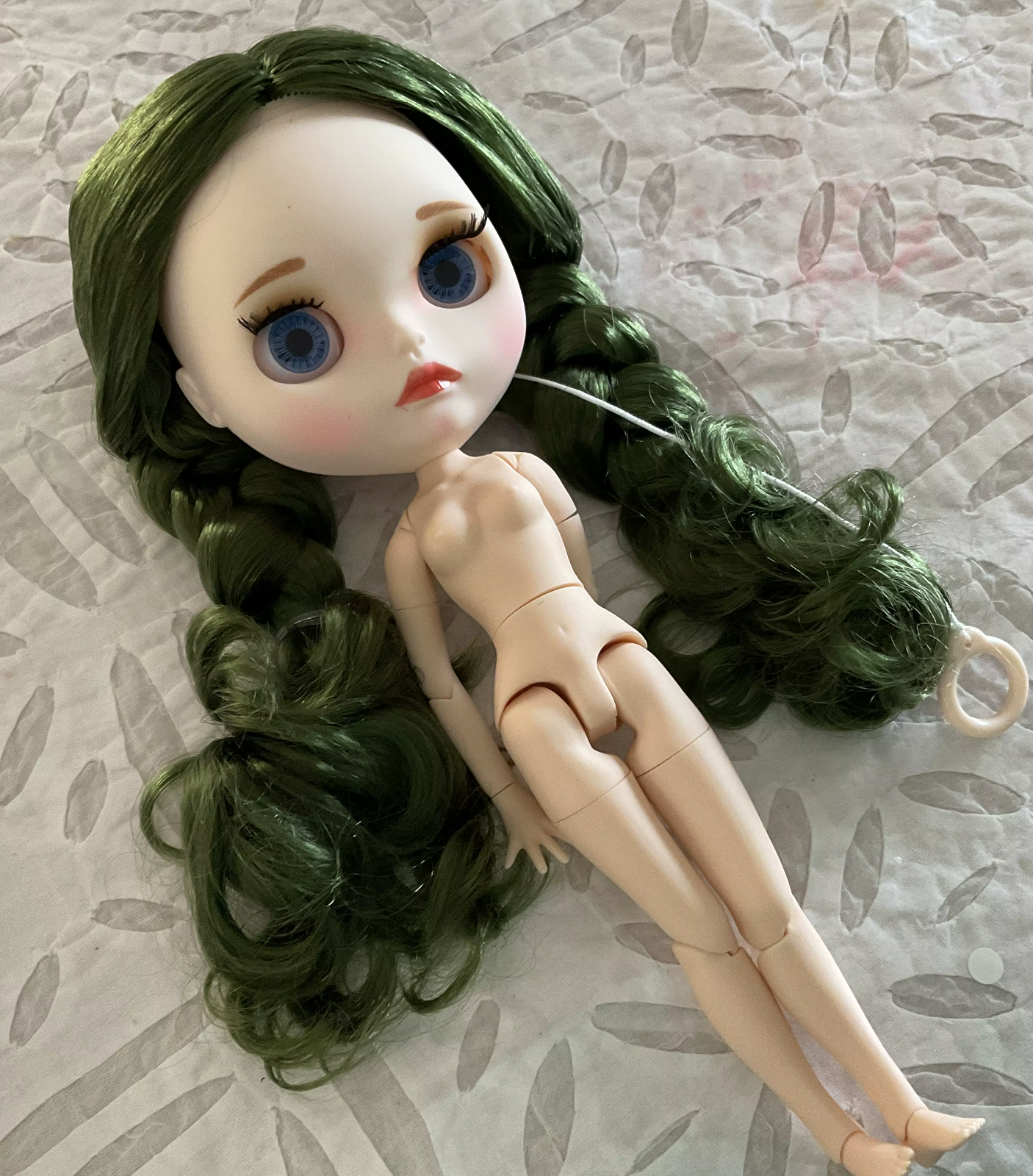 Neo Blythe Doll Matte Face Odd Dark Green Hair Interactive Toy 4 Color Eye Braid There are just Limited quantity available! Get yours NOW before we run out!!! Step into a world of creativity and magic with our stunning 12-inch Blythe doll! Perfect for collectors and doll enthusiasts, this Blythe doll is ready to captivate hearts with her unique charm and endless possibilities for customization. Features: ✨ Expressive Eyes: Four different eye colors and positions with a simple pull of a string, reflecting her many moods and styles. 👗 Customizable Beauty: Change her hair, makeup, and style to create a doll that’s uniquely yours. 🌈 Premium Quality: Crafted from durable, high-quality materials to ensure she stands the test of time. 📏 Perfect Size: At 12 inches tall, she's the ideal size for both play and display. Why You'll Love Our 12" Blythe Doll: Endless Creativity: Perfect for photography, crafting, and artistic projects, she’s a blank canvas for your imagination. Community Connection: Join a worldwide network of Blythe enthusiasts who share your passion and creativity. Unique Gift Idea: A thoughtful and personalized gift for birthdays, holidays, or any special occasion, sure to delight both children and adults. Bring home the magic of the 12" Blythe doll today and dive into a world where imagination knows no bounds. Embrace the charm, creativity, and joy that only a Blythe doll can offer. Order now and let the adventures begin! Dolls are selling in nude, Not including clothes and accessories.