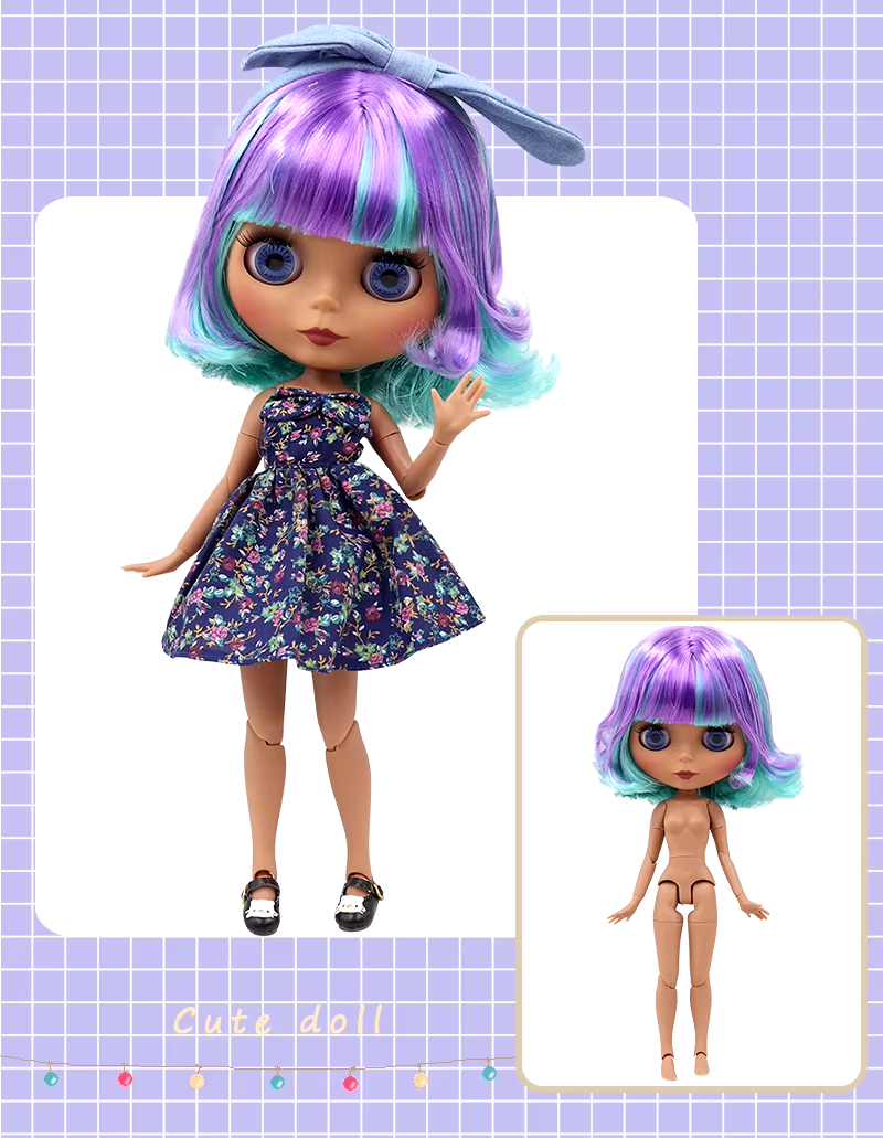 Neo Blythe Doll Matte Face Nude Medium Dark Skin Hair BJD Toy Collectible Puppet There are just Limited quantity available! Get yours NOW before we run out!!! Step into a world of creativity and magic with our stunning 12-inch Blythe doll! Perfect for collectors and doll enthusiasts, this Blythe doll is ready to captivate hearts with her unique charm and endless possibilities for customization. Features: ✨ Expressive Eyes: Four different eye colors and positions with a simple pull of a string, reflecting her many moods and styles. 👗 Customizable Beauty: Change her hair, makeup, and style to create a doll that’s uniquely yours. 🌈 Premium Quality: Crafted from durable, high-quality materials to ensure she stands the test of time. 📏 Perfect Size: At 12 inches tall, she's the ideal size for both play and display. Why You'll Love Our 12" Blythe Doll: Endless Creativity: Perfect for photography, crafting, and artistic projects, she’s a blank canvas for your imagination. Community Connection: Join a worldwide network of Blythe enthusiasts who share your passion and creativity. Unique Gift Idea: A thoughtful and personalized gift for birthdays, holidays, or any special occasion, sure to delight both children and adults. Bring home the magic of the 12" Blythe doll today and dive into a world where imagination knows no bounds. Embrace the charm, creativity, and joy that only a Blythe doll can offer. Order now and let the adventures begin! Dolls are selling in nude, Not including clothes and accessories.
