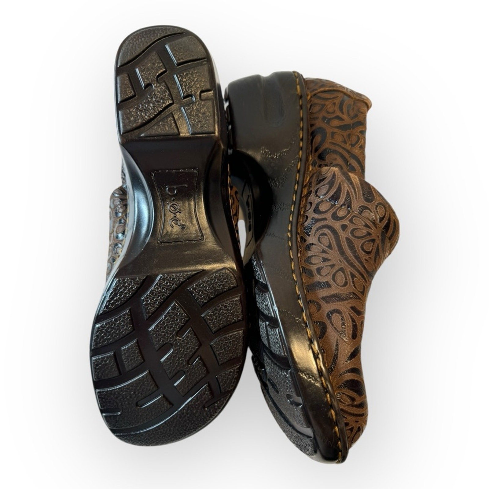 Brand new! Western, embellished, embossed, chocolate brown trending style Peggy Slip on Clog Mule. Excellent preowned condition No sign of wear at all See pictures for immaculate condition Comfort arch technology