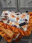 Keep your little one cozy and adorable with this large Fall Nursery Blanket from Minky. The blanket features a charming owl theme in a vibrant orange color, perfect for adding a touch of whimsy to your baby's nursery. Made from soft and durable materials, this blanket is sure to keep your baby warm and comfortable during the cooler months. Measuring 40 inches by 40 inches, this unisex blanket is perfect for snuggling up with your little one during feeding time or naptime. The blanket is also machine washable, making it easy to keep clean and fresh. Give your baby the gift of cozy warmth and adorable style with this Fall Nursery Blanket from Minky.