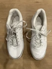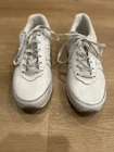 Embrace everyday comfort and style with these New Balance Women's Athletic Sneakers. Designed for versatility, these size 9 white sneakers feature a low-top shaft and a durable synthetic/textile upper, ensuring a breathable fit that's perfect for any casual or activewear occasion. The cushioned insole and supportive rubber cleats provide excellent traction and comfort for activities like walking, tennis, or CrossFit. These New Balance 411 models integrate athleisure seamlessly into your wardrobe with their sleek lace-up design and solid white color. The shoes are equipped with all-day ease features, including a comfortable standard shoe width and a soft synthetic lining. Whether you're hitting the pavement or the classroom, these sneakers are crafted to keep your feet supported and stylish throughout all seasons.