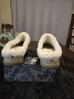 The Clarks Cloudstepper Shoes Clogs Slippers in Brown Faux Fur, Size 8.5, are designed for ultimate comfort and style. These slip-on clogs feature a low heel height and cushioned insole made of faux fur and foam for added comfort. The faux fur lining and rubber outsole provide warmth and support, making them perfect for lounging around the house or running quick errands. The classic solid cinnamon brown color and slipper style make them a versatile addition to any woman's footwear collection. Ideal for those seeking lined, cushioned, and comfortable shoes that offer the convenience of a slip-on design.