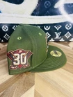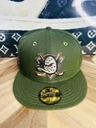 Get your hands on this exclusive New Era Hat Club Horror Pack featuring the Mighty Ducks and Blair Witch designs. The fitted hats are made with 100% polyester fabric and come in a size of 7 3/8. The green color adds a pop of color to any outfit and the upside-down logo adds a unique touch to the classic design. These hats are perfect for any occasion, whether it's a day out with friends or a sporting event. The hat is not only stylish but also comfortable to wear all day long. Don't miss out on the opportunity to own a piece of horror pack history.