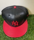 Get your hands on this authentic New Era New York Yankee fitted hat, made with 100% genuine leather. This vintage piece is a must-have for any sports fan, featuring the iconic baseball cap style and the classic black and red color combination. Perfect for the fall and winter seasons, this hat is sure to keep you warm and stylish. The size 8 fits true to size, making it a great gift option for any man in your life. Show off your love for the Yankees with this high-quality, one-of-a-kind hat.