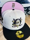 Get your hands on this rare and sold out New Era Prociety Rahnni Mighty Ducks NHL white hat. This exclusive hat features a solid pattern and is made with 100% polyester fabric, making it perfect for all seasons. The hat is designed with a upside down logo and is available in size 7 1/2. This hat is perfect for any sports fan, especially those who support the Mighty Ducks. It is made with high quality materials and is designed to last. Don't miss out on the chance to own this classic and stylish hat.