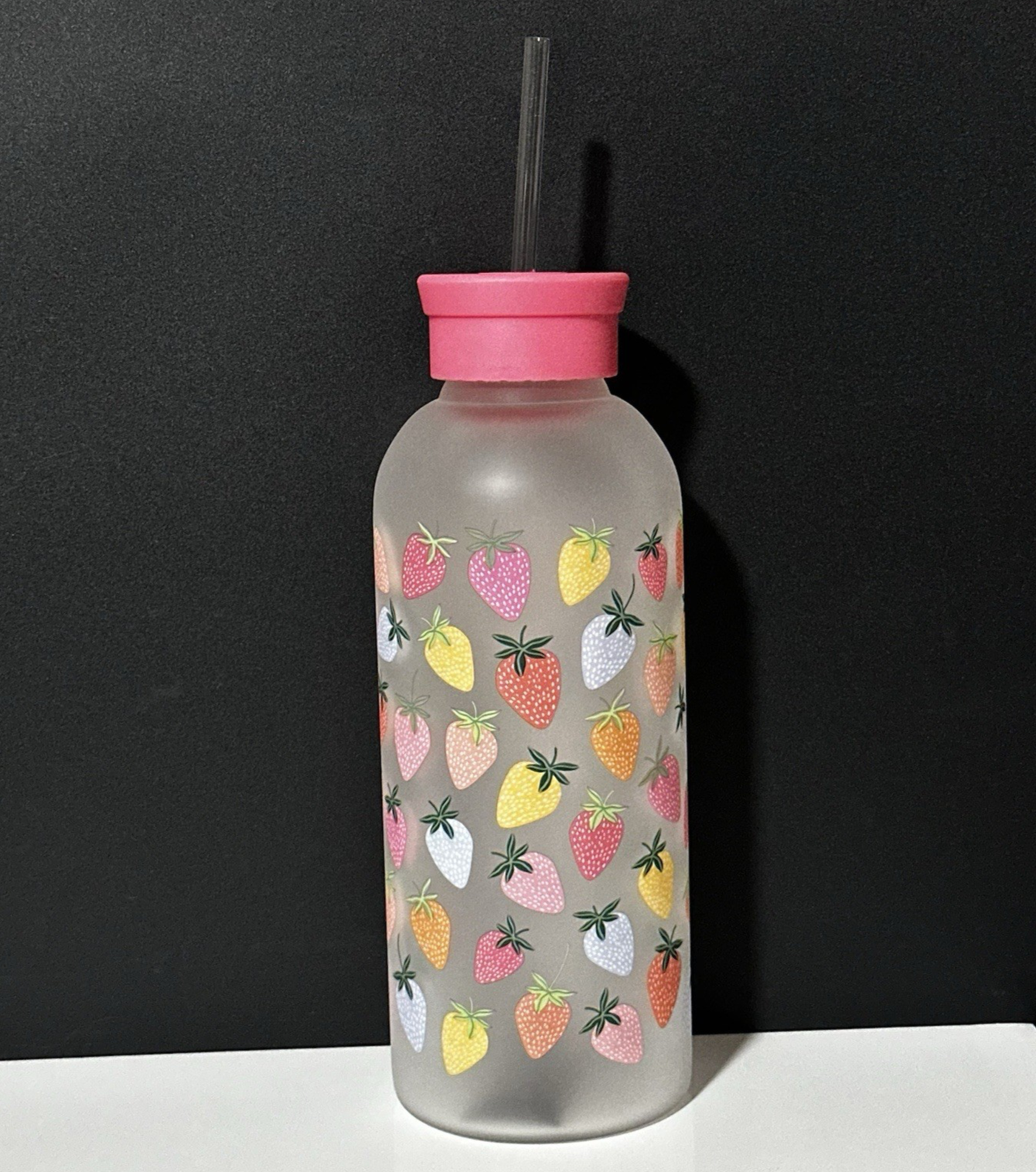 New OCS DESIGNS Pink Reusable 25 oz Glass Water Bottle with Flowers