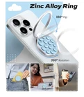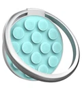 This is a light blue silicone suction cup phone mount stand with a zinc alloy ring. It is designed for easy mounting in a car and includes a suction cup for secure attachment. The silicone material provides a soft grip, while the zinc alloy ring adds a stylish touch. This mount is suitable for holding a phone in place while driving or using GPS navigation.