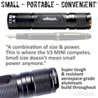 New V3 365nm Mini - Black Light UV Flashlight – High Definition Pure Ultraviolet - Professional Grade High Power Upgraded 5 Core UV LED – USA Stock Attention: Double click to turn ON. Switch is not faulty. WHY V3 365nm MINI? Aimed at those who need a smaller more portable device but still want uvBeast UV power. Using a UV LED from the larger and renowned uvBeast V3 365nm model, the MINI is a smaller, lighter, convenient package which slips into your pocket but still packs a hefty UV punch! Upgraded features [Oct2023 Ed.]: More UV 365nm power, Wider UV beam, Longer working time, Accidental operation protection UV On A Different Level Entirely. Same high octane yet low contamination uvBeast UV as the V3 365nm. The viewing quality will really impress you. Filtered 365nm UV is considered as the gold standard sweet spot for UV users. uvBeast optimized 365nm UV is in a different league, with little visible light leak, which is exactly what you want in a UV light No More Hassle. At last, no-faff charging! Relief. Simply connect the cable to charge. That’s it. Unscrew nothing, remove nothing. No more hunting around for now-where-did-I-put-that-charger, or, turn back-I-forgot-the-charger User-Centered Design. Our R and D people are not sleeping. We talk when we must and shut up and listen to feedback when we need to. We're always moving with innovation and new product developments. This time we enter the fray with size, portability, and convenience with as much optical uvBeast power we can muster. With user generated wish lists and rigorous user testing, you’re getting a proven and field tested product and avoiding a dud which nobody likes A Convenient Little Package. And it’s ready out-of-the-box. It’s our uvBeast UV power, and newest UV tech which we’re known for, which combines small size with a big UV payload that you’re looking for. High power UV means better results for you Attention: Double click to turn ON. Switch is not faulty. Prevents accidental operation in your pocket