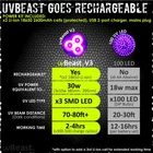WHY uvBeast V3? It's the evolution from 100 LED models. (1) V3 WILL SAVE YOU BIG MONEY IN THE LONG RUN. No more stung by hidden running costs that hurt your pocket. (2) HIGHER UV INTENSITY THAN 100 LED. Delivered by massive TRIPLE 1.2A UV LEDs. (3) UNBEATABLE UV RANGE. Now the UV beam throw goes out to more than 70 feet. This is BIG LEAGUE YOU’LL MAKE BIG COST SAVINGS IN THE LONG RUN. uvBeast V3 does a re-configured power delivery system. Way more efficient than common 100 LED versions. A costly but necessary evil for that tech EVEN HIGHER UV INTENSITY THAN 100 LED VERSIONS. Flick the switch on the V3 and you’ll see the difference of the upgraded 3x SMD LEDs. It’s most noticeable in the throw of the UV beam. It’s long range out to 70 feet, which is more than twice that of 100 LED versions. We even successfully tested the fluorescence of UV ink out to 135 feet! This UV flashlight will NOT leave you wanting for more EVOLUTION FROM 100 LED. The 100 LED versions use the older DIP type LEDs (Dual Inline Package) encased in a bulb. There’s a limit to their UV output. We pushed that envelope with the V2. V3 now uses SMD tech to pump higher intensity UV delivered at 3.6 Amps (3x1.2A LEDs) – just when you thought that our 100 LED couldn’t get any more intense! READY TO MOVE INTO ULTIMATE UV FLASHLIGHT POWER? Our 100 LED totally impressed the market, and just when they thought it couldn’t get any better. Well here it is. With V3 you’ll be making the transition into biggest league UV. We continually test the V3 in the lab, in the field, and with a select bunch of testers/critics to provide a great fit for your needs Product Description THIS IS WHAT EVOLUTION FROM 100 LED UV LOOKS LIKE. THE ALL NEW V3 The uvBeast Brand uvBeast is a unique brand. We’re scientists (PhDs) and engineers (C.Eng) by background backed with years in industry. With an awesome reputation in both domestic and commercial markets, we don’t do “me too” product imitations. Instead we like to innovate and make a genuine difference. This really isn’t just another Black Light or UV Flashlight The uvBeast Pedigree Most sellers are standing still waiting for the next wholesale UV flashlight to be mass produced by factory xyz, marked up before onward to you. We're in a different game. We have our finger on your pulse and continually respond to user needs like yours. So we did the V3 uvBeast Market Adoption uvBeast currently serve commercial applications and industry sectors in NDT (Non-destructive Testing), Aviation, Oil & Gas, Automotive, Adhesive curing, Manufacturing, Hospitality, Fishing, Mining, Agriculture, Hygiene-level monitoring, and more. Everybody likes it when commercial-grade high power UV comes onto the domestic scene! The uvBeast V3 Formula Designed for longest-range & highest power applications Long range UV spot beam Adjusted wavelength specifically suited for many domestic & commercial uses Capable under interior/ambient lighting Complete control & line-of-sight of our entire supply chain from raw materials to manufacturing User-centered design NEW RELEASE: uvBeast V3. THE BIG POWER AND HIGHLY REGARDED UV FLASHLIGHT JUST GOT REVAMPED Since 2016 a lot of folks (and we mean a-lot) have told us they love the uvBeast, BUT please make a rechargeable one, they said. Why? The costs add up with the 100 LED versions. Every 12-14 hours of use you’ll need to fork out for another six AA alkaline batteries. But, folks have our 100 LED models in return for blindingly good UV! So, here’s our give-back to you WHAT’S NEW WITH V3 This is commercial-grade high power UV deployed in professional services, now making its way to you. Now it uses rechargeable 18650 Li-ion cells. BUT, that’s not all. Powered by Li-ion means BIG SMD LEDs, more UV intensity and much more UV range, and with the same uvBeast UV top-notch beam (385-395nm) you’ve come to expect from us. To say that it’s even better than our 100 LED models is really quite saying something. Do ask anyone SAVE HUGE COSTS WITH RECHARGEABLE 18650 LI-ION CELLS Let’s face it. You’re going to be owning an LED UV flashlight for years. Considered your total cost outlay for a 100 LED? You’ll need to fork out for a new set of six AA alkaline batteries every 12-14 hours of use. That’s quite a lot of dollars even over six months of use, let alone a single year WE NAILED IT We’ve already rolled this out to an early group of professionals and enthusiasts who are hard to please! Strong thumbs up, which means that you won’t be making a blind investment CLAIM TO FAME? Producing a mega power, high intensity UV beam isn’t easy for a handheld portable package. Especially a uvBeast top-notch UV beam, unbeatable throw range, and a Li-ion power source, into one flashlight! We wanted to make sure that you won’t find others like it V3 is the upgrade into higher intensity UV with a beam which will shock you. But yet low cost-of-ownership* *x2 rechargeable Li-ion cells give you the life of approx. 93 sets of x6 AA cells if you use the 100 LED versions. The V3 385-395nm has been nicknamed by users as the "UV Range Master". And there's a good reason for that WE DON'T IMITATE. WE INNOVATE A UV FLASHLIGHT WITH THE DRAWBACKS DESIGNED-OUT We don't spew out me-too UV flashlights. We do it different. We solve the user frustration first, then produce. User-centered design means we put user requirements at the heart of every design. Users want more power. Our R and D people are not sleeping. We're always upgrading and updating and we're absolutely obsessed in getting top performance into your hands We've been in the UV Flashlight business since 2016 when we launched our V1 model. V1 was a direct hit with users. Why? Because we talk when we must and shut up and listen when we need to. User-feedback goes straight into our design engineering The market is full of fly-by-night or non-expert sellers who often procure from dubious and non-verified sources. Cloned or copie